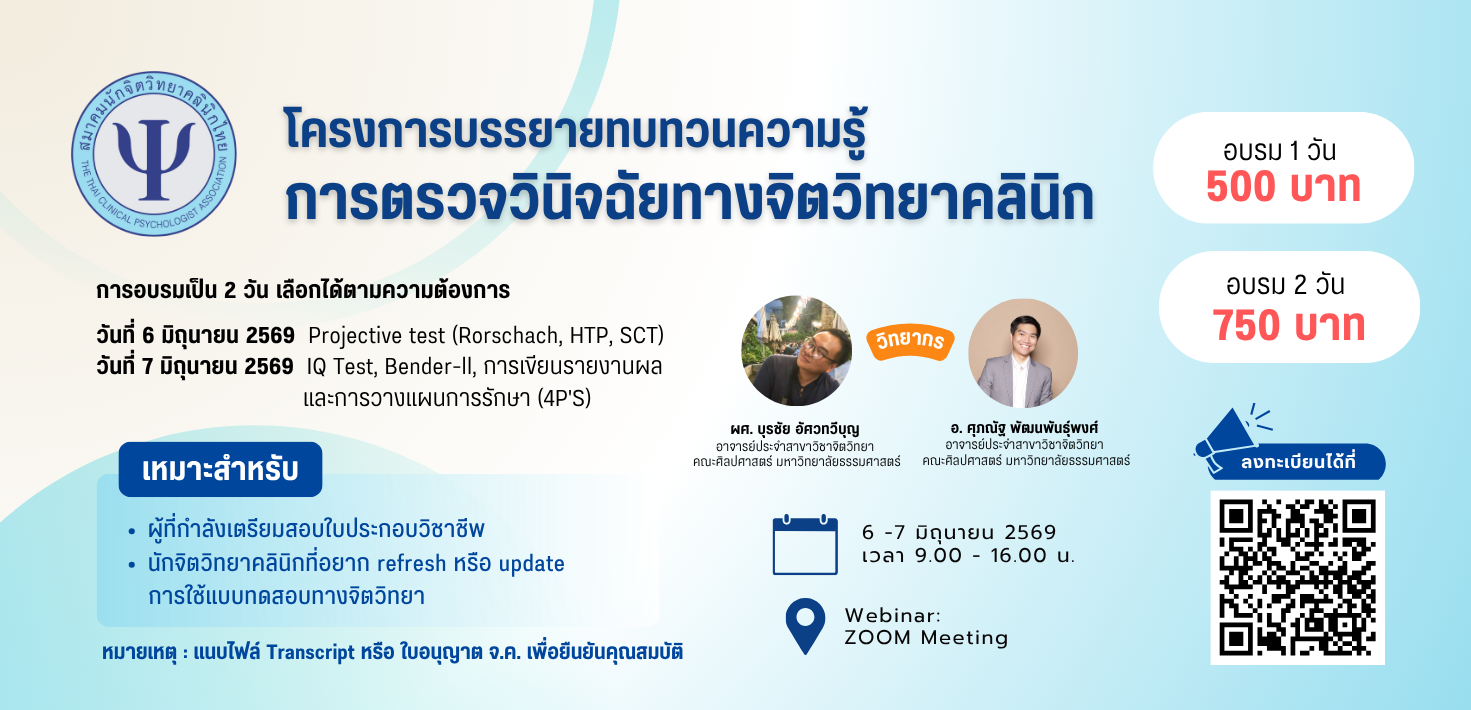 Copyright 2026 - สมาคมนักจิตวิทยาคลินิกไทย พัฒนาโดย บริษัท IGENCO