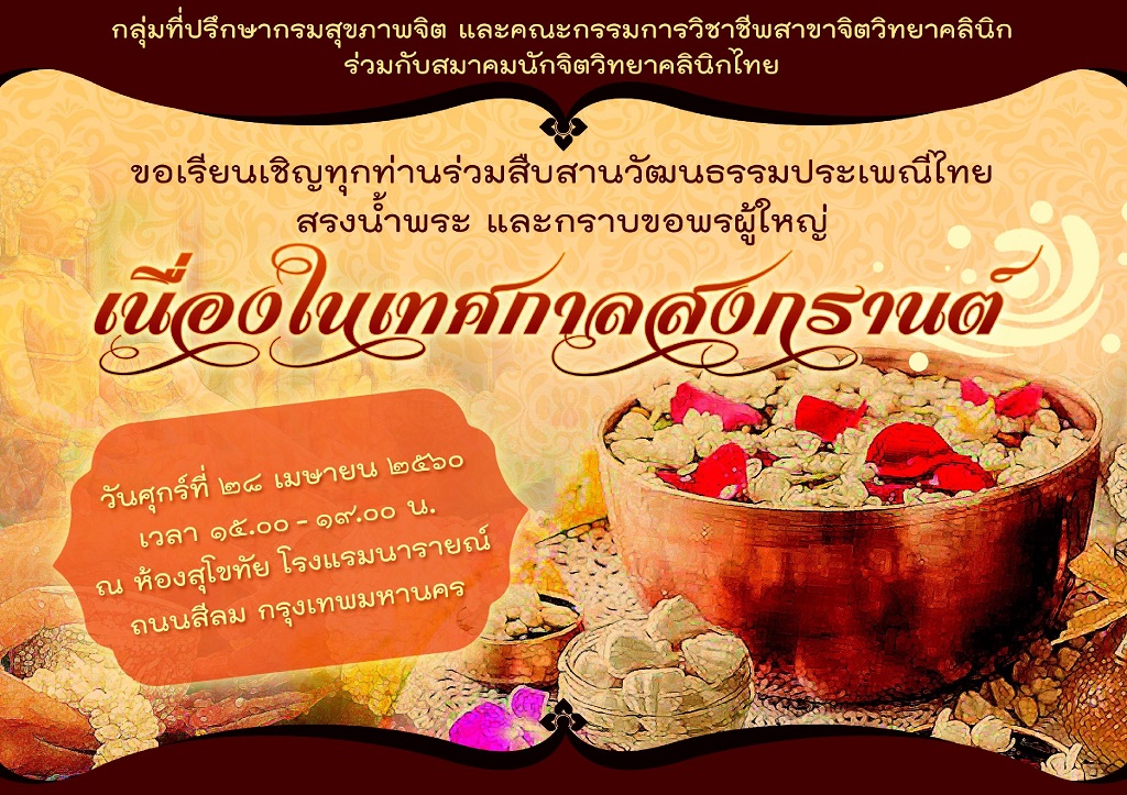 ขอเชิญท่านเข้าร่วมงานสืบสานวัฒนธรรมประเพณีสงกรานต์ประจำปี ๒๕๖๐