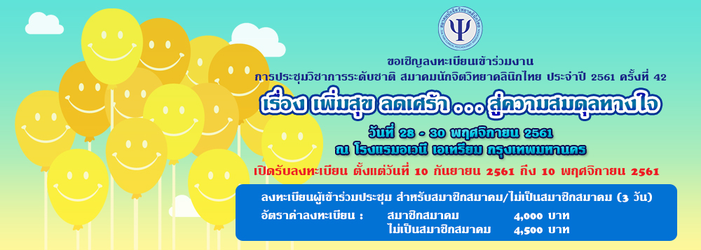 ประชุมวิชาการระดับชาติ สมาคมนักจิตวิทยาคลินิกไทย ประจำปี 2561 ครั้งที่ 42