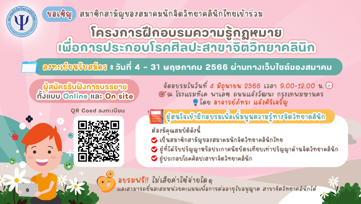 โครงการฝึกอบรมความรู้กฎหมายเพื่อการประกอบโรคศิลปะสาขาจิตวิทยาคลินิก