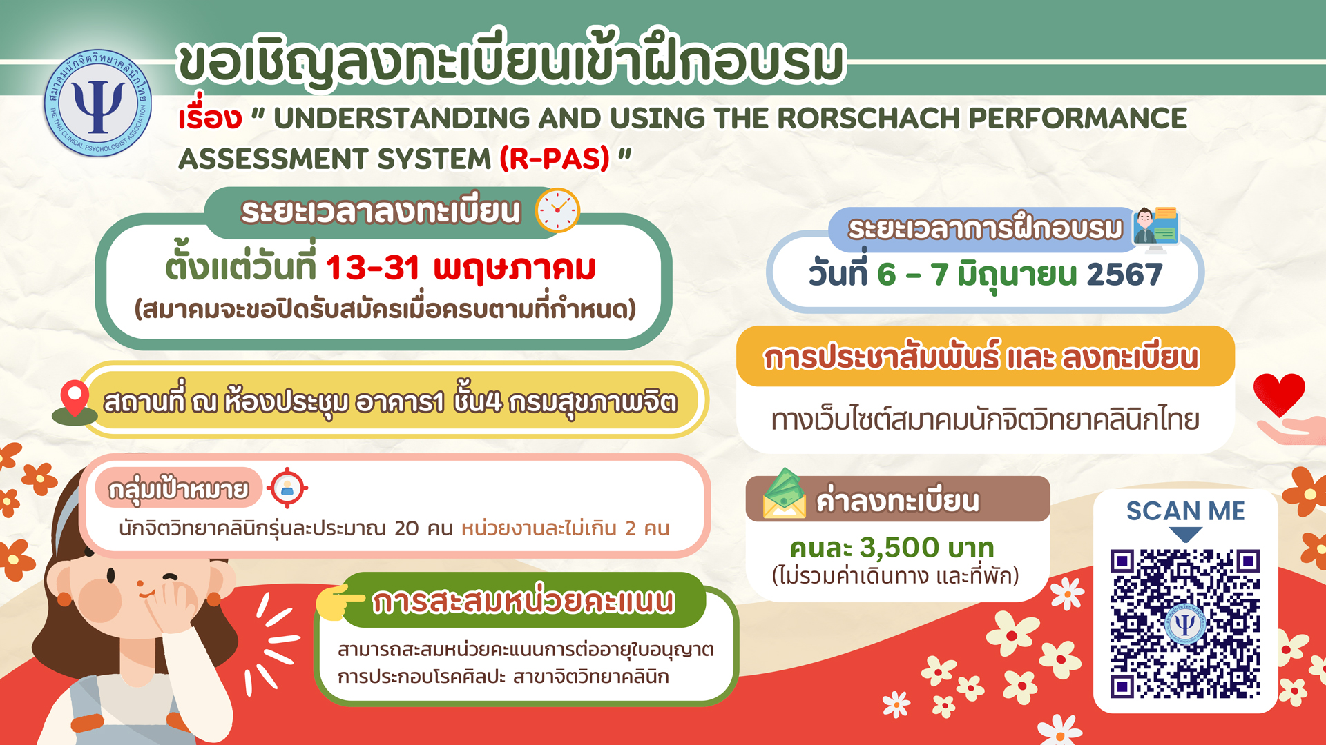 ข่าวประกาศที่สำคัญ ขอเชิญลงทะเบียนเข้าฝึกอบรม โครงการฝึกอบรมเรื่อง UNDERSTANDING AND USING THE RORSCHACH PERFORMANCE ASSESSM ลงทะเบียน คลิกที่นี่ Attachments: โครงการฝึกอบรมเรื่อง UNDERSTANDING AND USING THE RORSCHACH PERFORMANCE ASSESSM[โครงการฝึกอบรมเรื่อง UNDERSTANDING AND USING THE RORSCHACH PERFORMANCE ASSESSM]61 kB โครงการฝึกอบรมเรื่อง UNDERSTANDING AND USING THE RORSCHACH PERFORMANCE ASSESSM[โครงการฝึกอบรมเรื่อง UNDERSTANDING AND USING THE RORSCHACH PERFORMANCE ASSESSM]132 kB โครงการฝึกอบรมเรื่อง UNDERSTANDING AND USING THE RORSCHACH PERFORMANCE ASSESSM[โครงการฝึกอบรมเรื่อง UNDERSTANDING AND USING THE RORSCHACH PERFORMANCE ASSESSM]96 kB