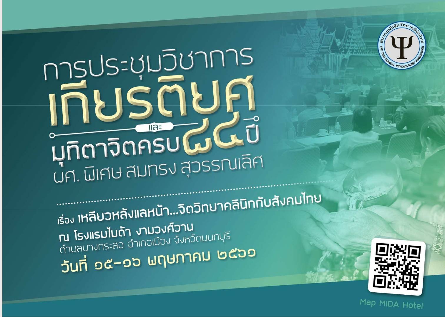รายละเอียดโครงการประชุมวิชาการเกียรติยศและมุทิตาจิตครบ ๘๔ ปี ผศ. พิเศษ สมทรง สุวรรณเลิศ เรื่อง "เหลียวหลังแลหน้า...จิตวิทยาคลินิกกับสังคมไทย"